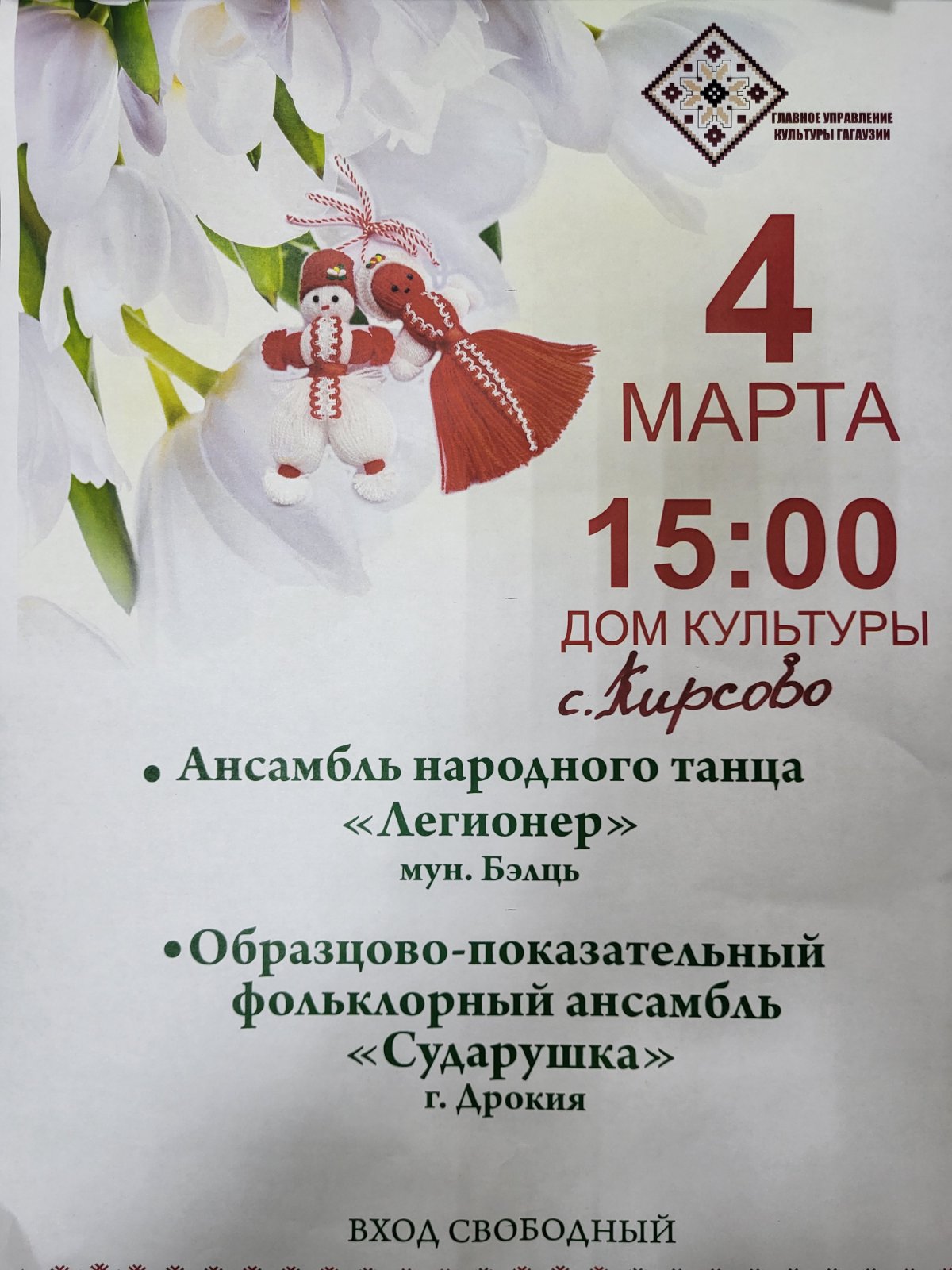 В с. Кирсово состоится концерт в рамках национального праздника «Mărțișor»